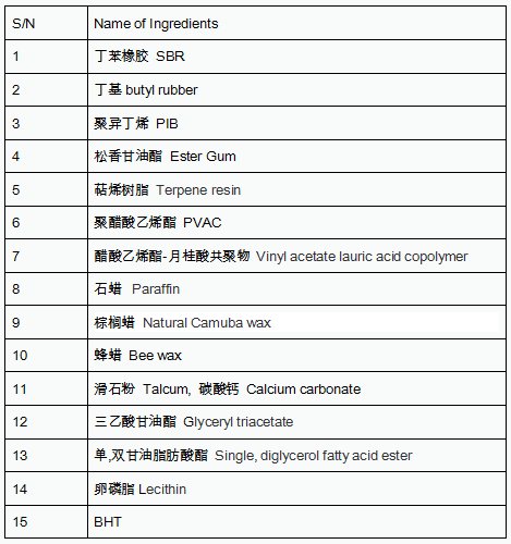 Gumbase حسب معيار الجودة الصيني GB29987-2014 ، التفاصيل على النحو التالي